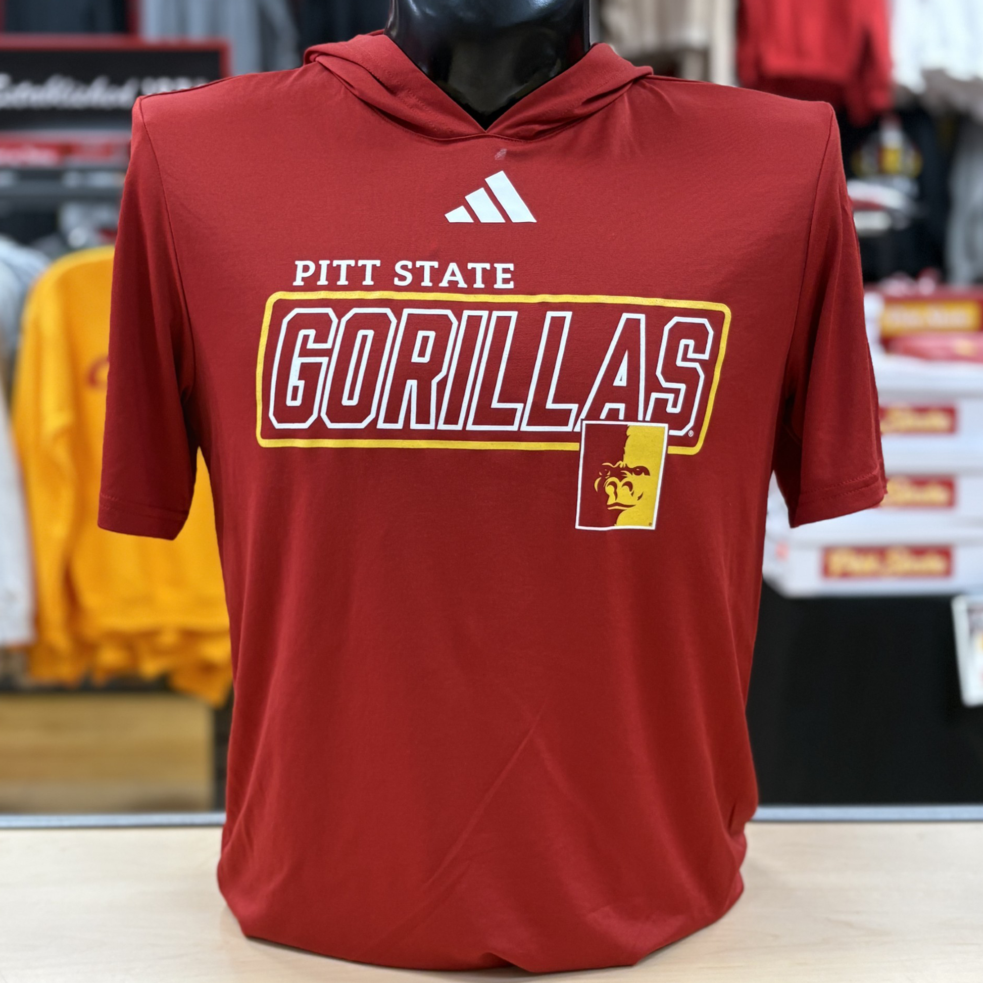 Pitt State University Pitt State Gorillas PSUAdidas Brand PSU A-HA D4T Hooded Tee- Red100% PolyesterPSU11413