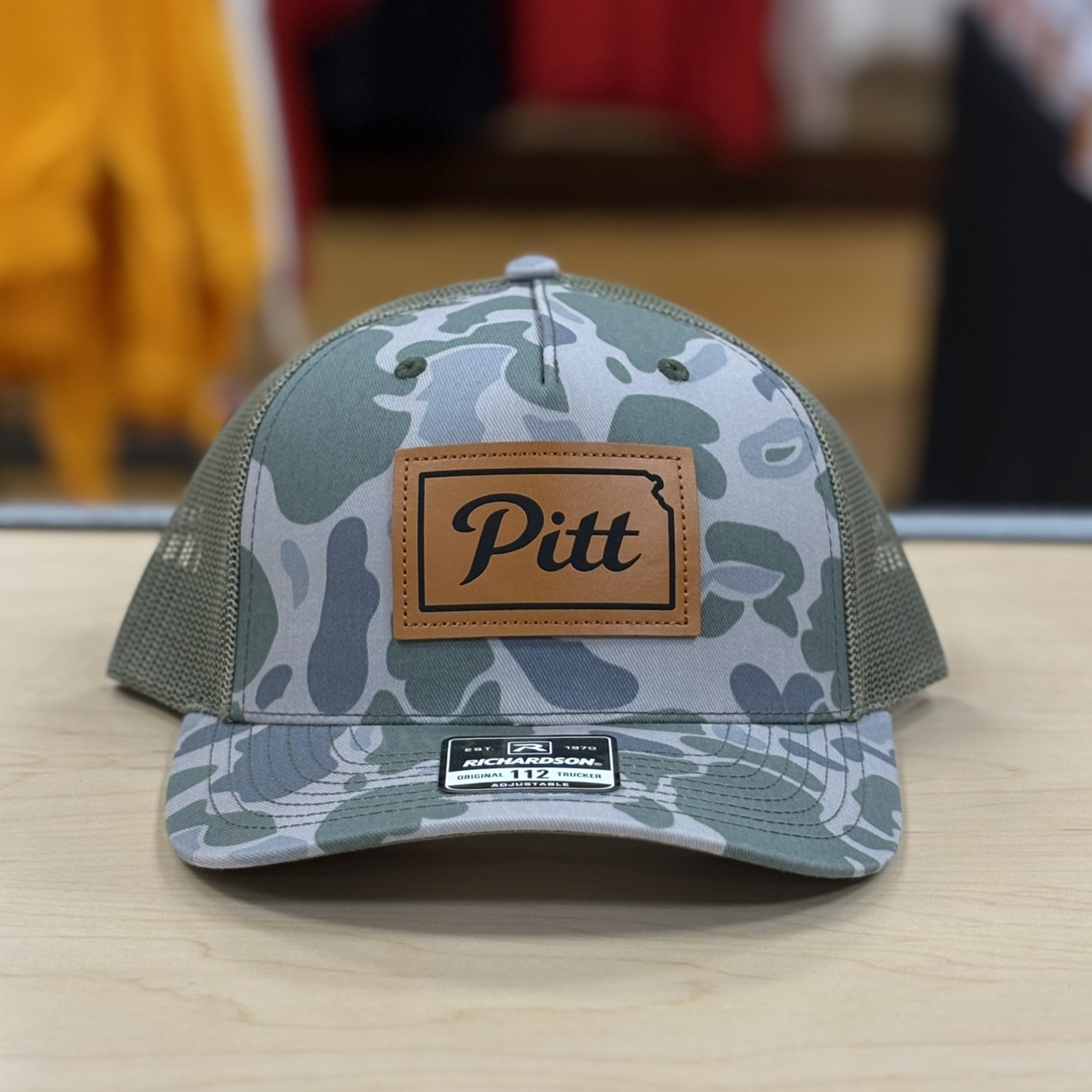 Richardson Brand PSU Script Pitt Leather Patch Camo Hat
